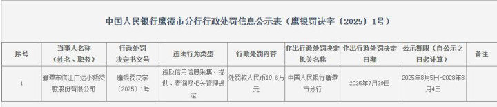 另外值得关注的是,今年7月,量子数科科技有限公司关联方鹰潭市信江广达小额贷款有限公司被中国人民银行鹰潭市分行罚款19.6万元,原因是违反信用信息采集、提供、查询及相关管理规定。此前,该公司还多次被监管部门处罚。