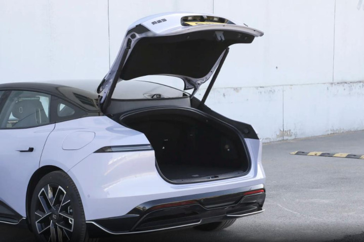 车侧的设计同样有细节,悬浮顶双层设计中,黑色车顶与车身色的衔接处做了圆润的过渡处理,没有生硬的棱角,车窗边框用了细窄的镀铬饰条点缀,阳光下泛着淡淡的金属光泽,提升了精致度。另外,车尾的设计简洁却有记忆点:贯穿式尾灯很细,点亮时是均匀的光带,夜间识别度高;尾箱上沿有一个小小的鸭尾扰流板,不是夸张的大尾翼,却能恰到好处地增强运动感,下方保险杠用了黑色包围,搭配隐藏式排气,整体风格统一,没有多余的凸起或线条,显得干净利落。
